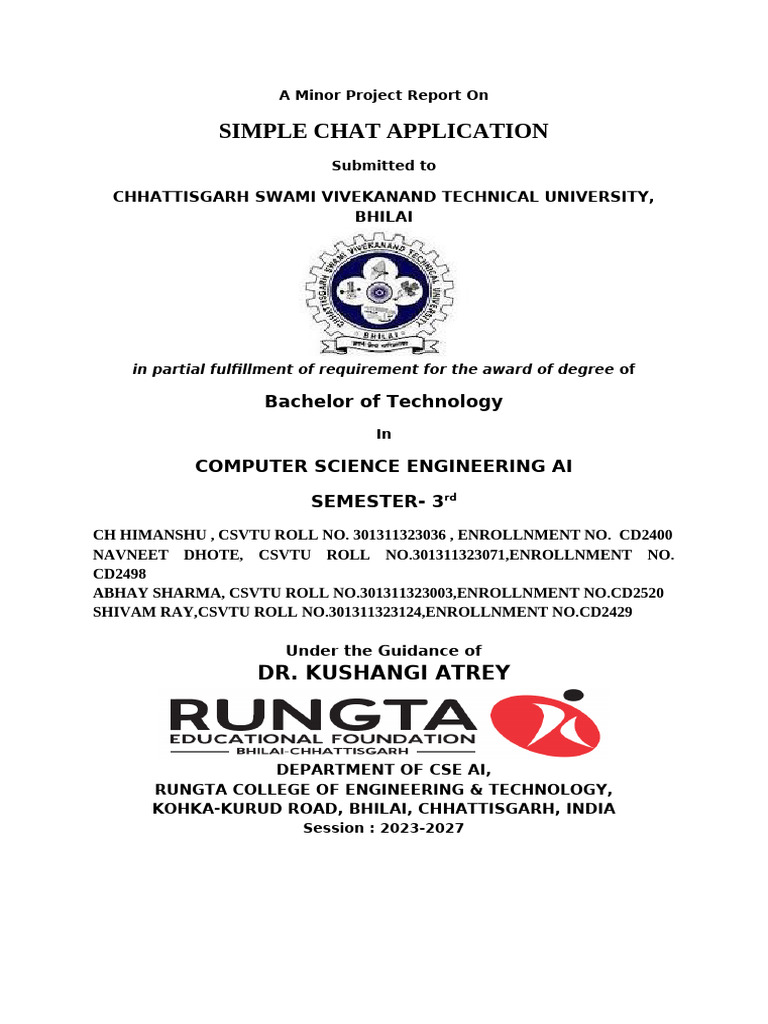 CH HIMANSHU , CSVTU ROLL NO. 301311323036 , ENROLLNMENT NO. CD2400