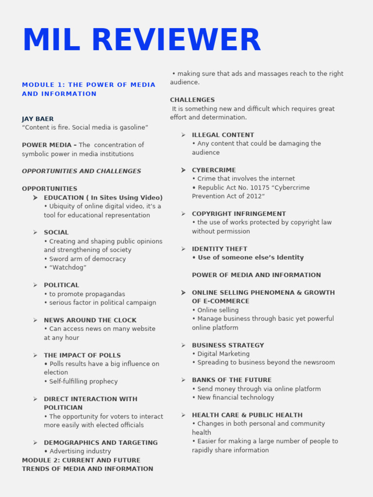 POWER MEDIA – The concentration of • Any content that could be damaging the