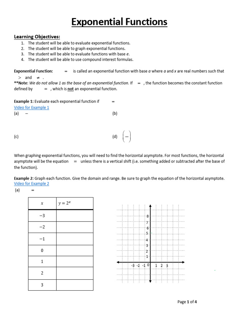 **Note: We do not allow 1 as the base of an exponential function. If a 1 , the function becomes the constant function