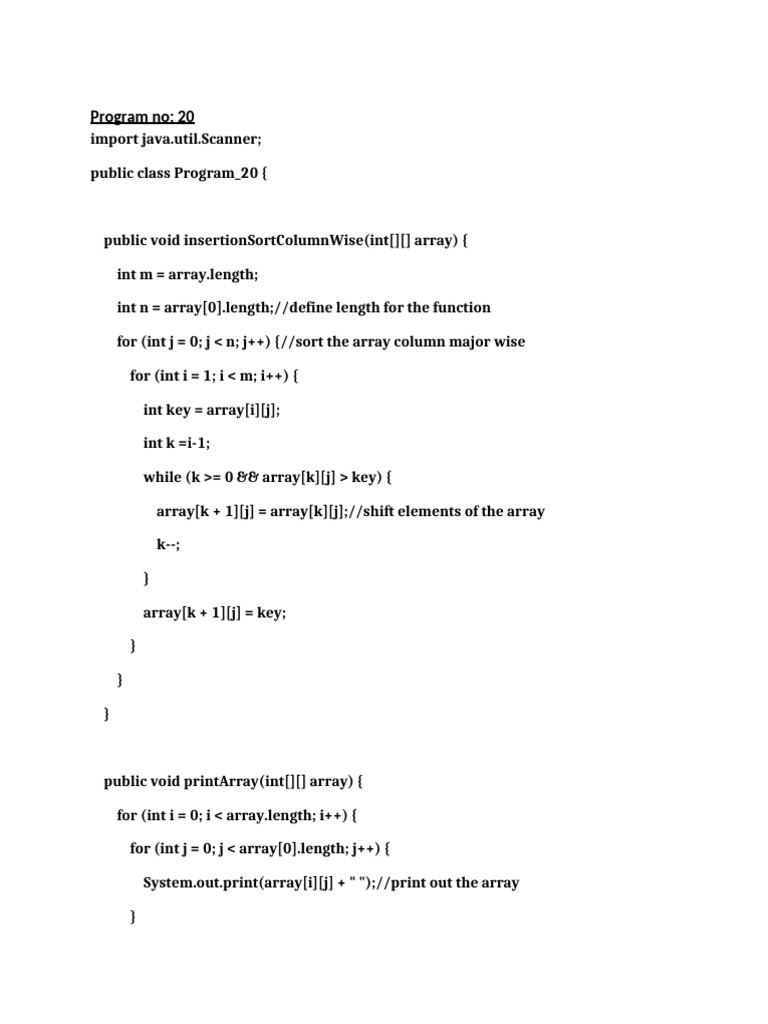public void insertionSortColumnWise(int[][] array) {
