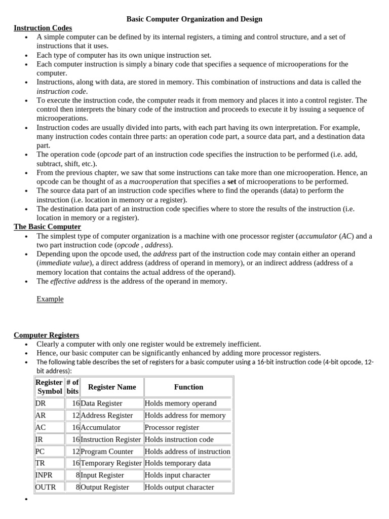 The following table describes the set of registers for a basic computer using a 16-bit instruction code (4-bit opcode, 12-