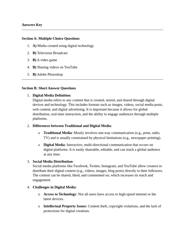o Digital Media: Interactive, multi-directional communication that occurs on