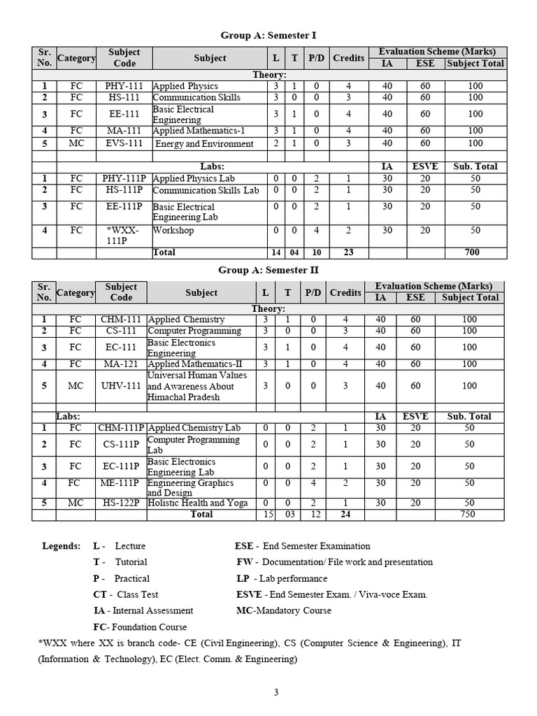 Subject L T P/D Credits IA ESE Subject Total