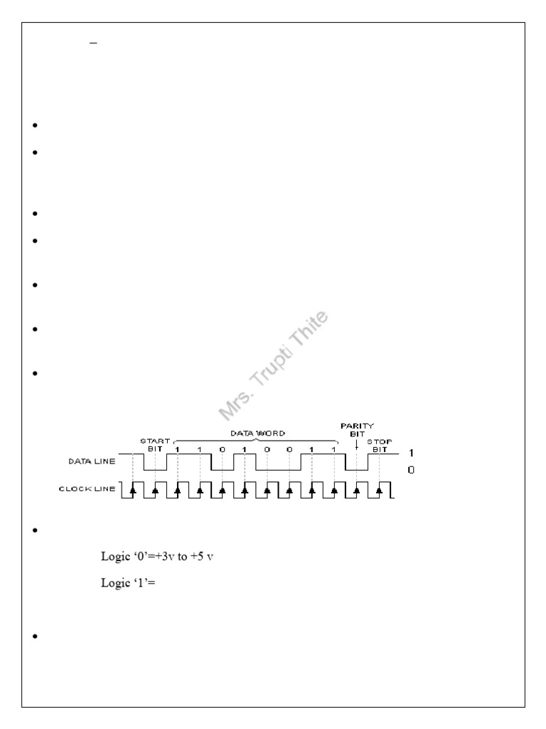 1 start bit, 8 data bits,1 stop bit,(optional 1 parity bit).