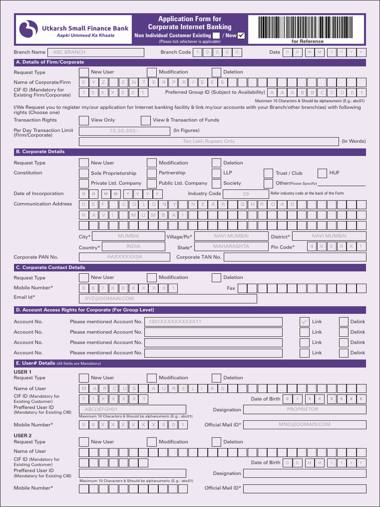 signatory of Corporate then fill form CIB user creation form.