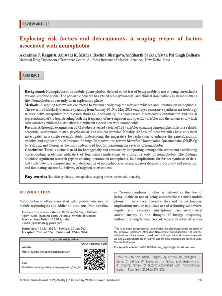 via one’s mobile phone. The pervasive concern has varied bio‑psychosocial and clinical implications in an individual’s