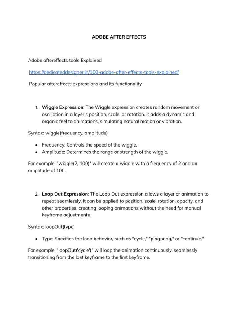 1. Wiggle Expression: The Wiggle expression creates random movement or
