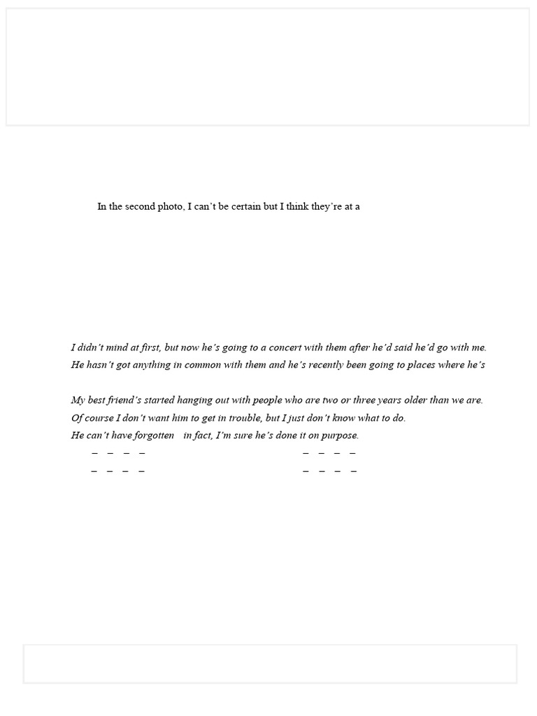 a. I didn’t mind at first, but now he’s going to a concert with them after he’d said he’d go with me.
