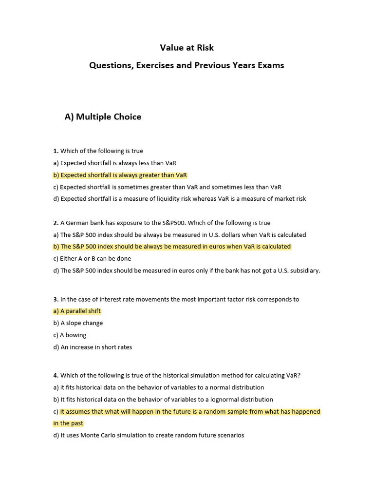 b) The S&P 500 index should be always be measured in euros when VaR is calculated