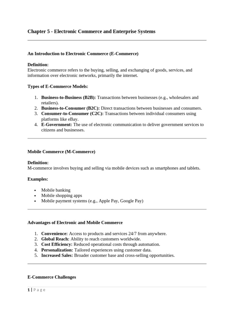 Chapter 5 - Electronic Commerce and Enterprise Systems
