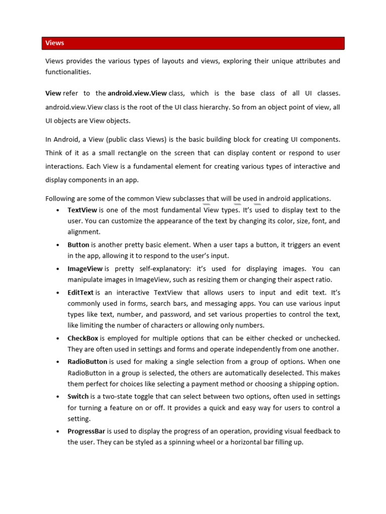 o Examples of Views include buttons, text fields, images, checkboxes, radio