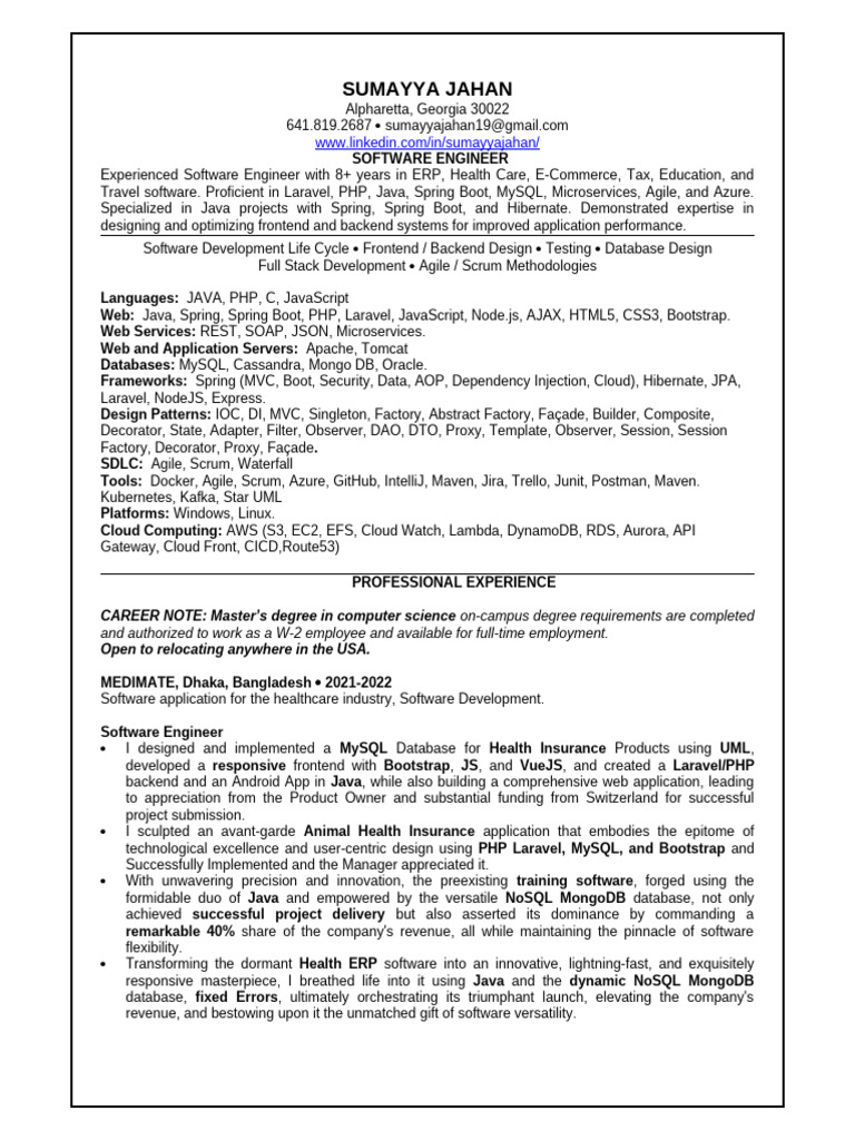 Experienced Software Engineer with 8+ years in ERP, Health Care, E-Commerce, Tax, Education, and