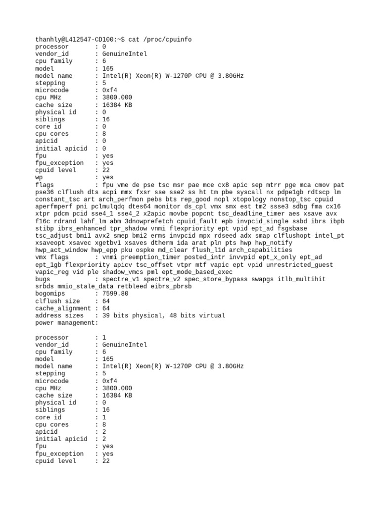 model name : Intel(R) Xeon(R) W-1270P CPU @ 3.80GHz
