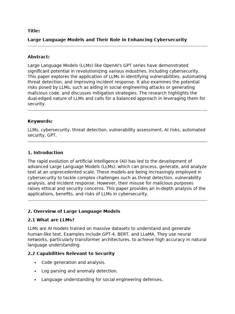 Large Language Models and Their Role in Enhancing Cybersecurity