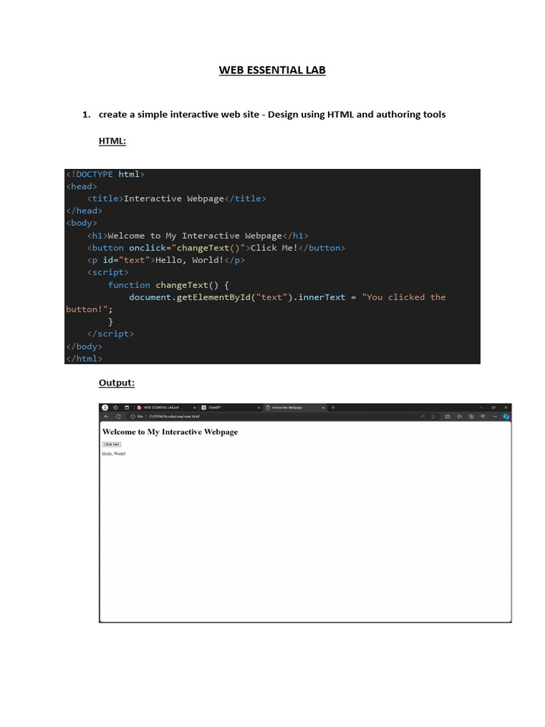 1. create a simple interactive web site - Design using HTML and authoring tools