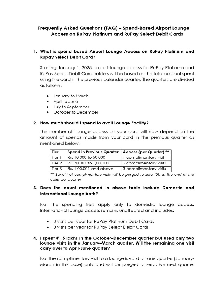 Starting January 1, 2025, airport lounge access for RuPay Platinum and