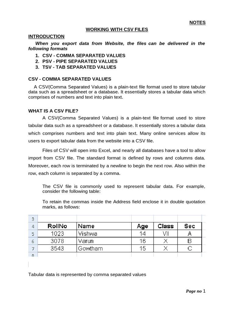 A CSV(Comma Separated Values) is a plain-text file format used to store