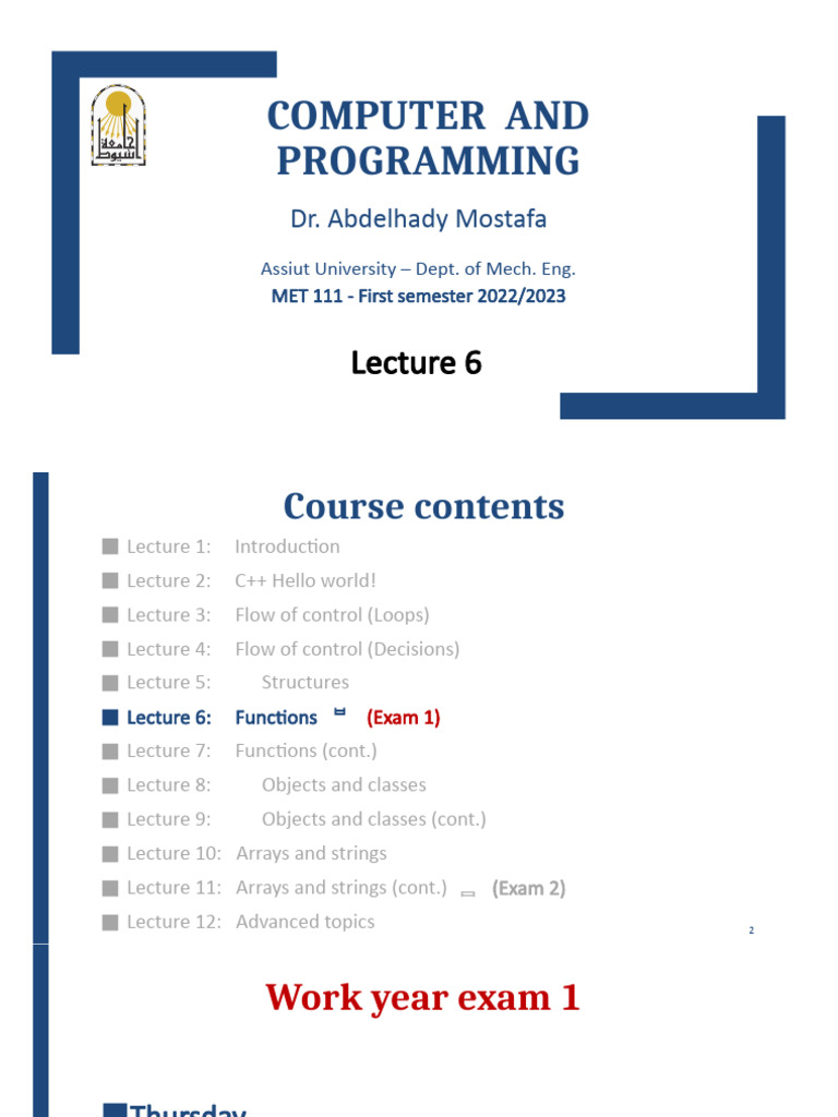 ■ Lecture 11: Arrays and strings (cont.) (Exam 2)