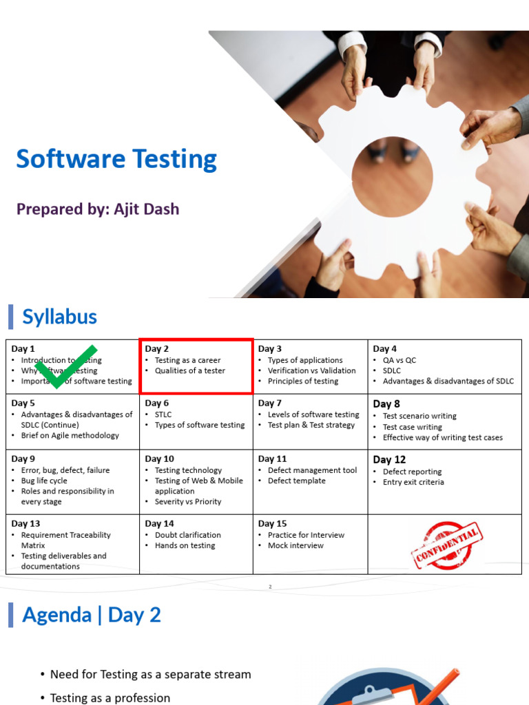 • Why software testing • Qualities of a tester • Verification vs Validation • SDLC