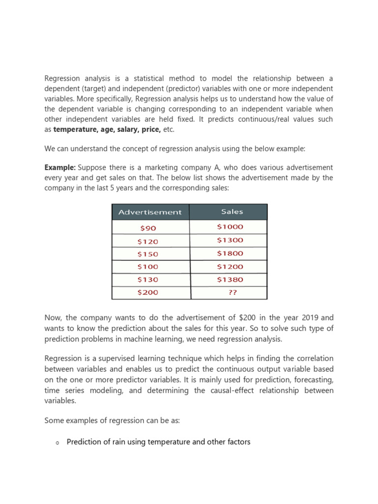 As mentioned above, Regression analysis helps in the prediction of a continuous