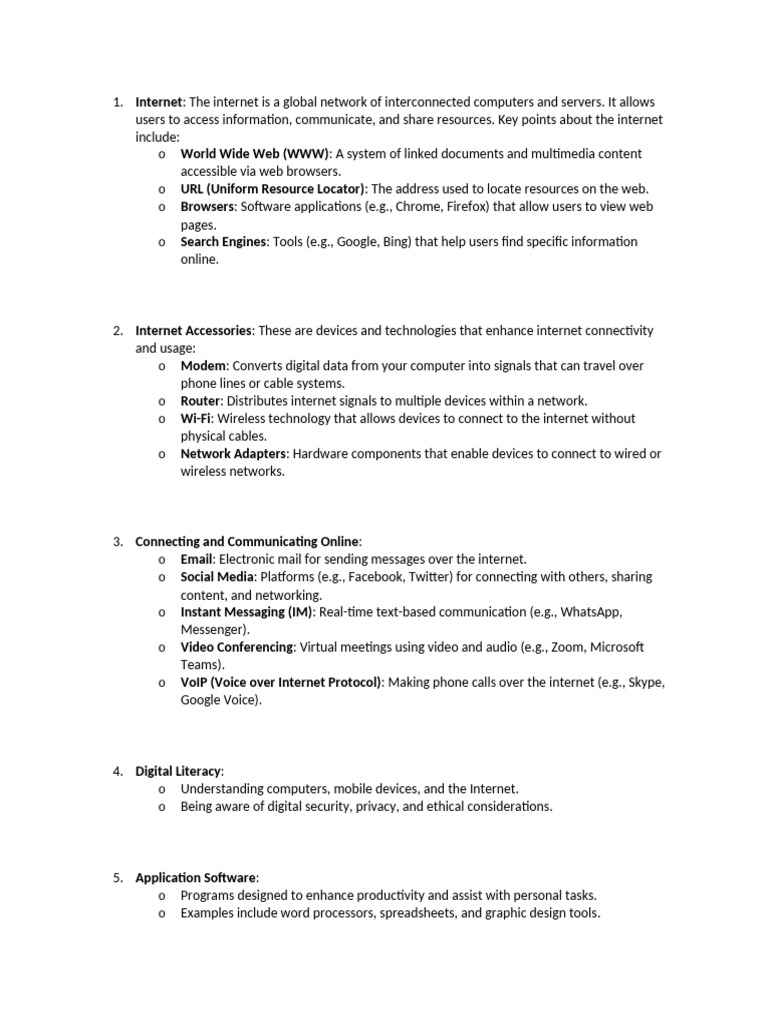 o Internet: Global network connecting millions of networks worldwide2.