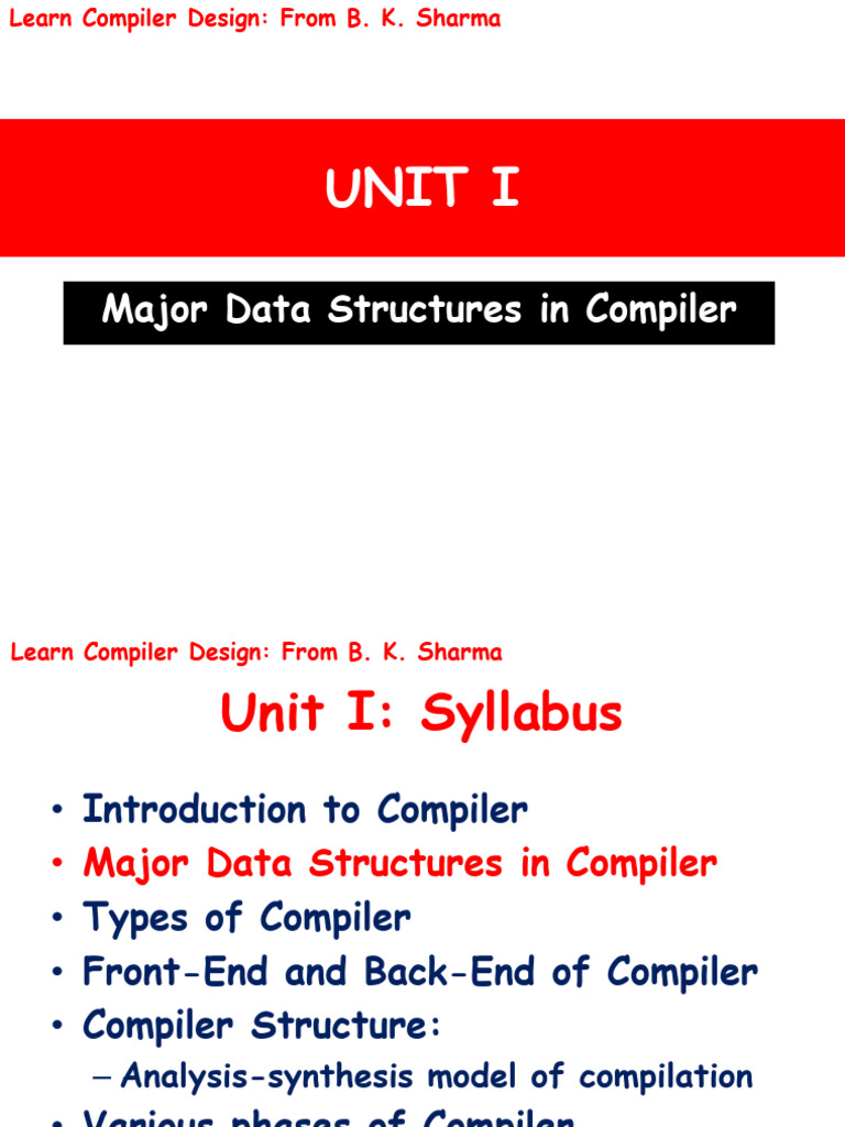1:Major Data Structures used in Compiler are tokens, Syntax