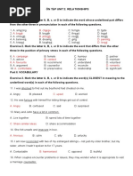 Mark the letter A B, C, or D on your answer that needs correction the following questions.