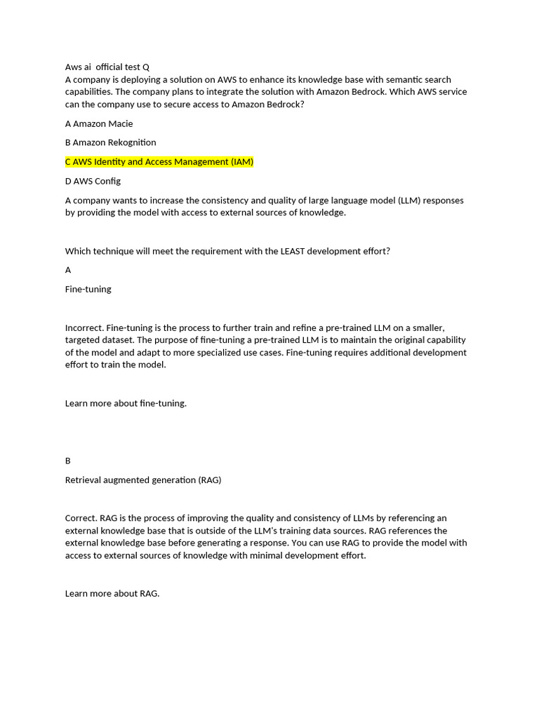 Aws ai official test Q