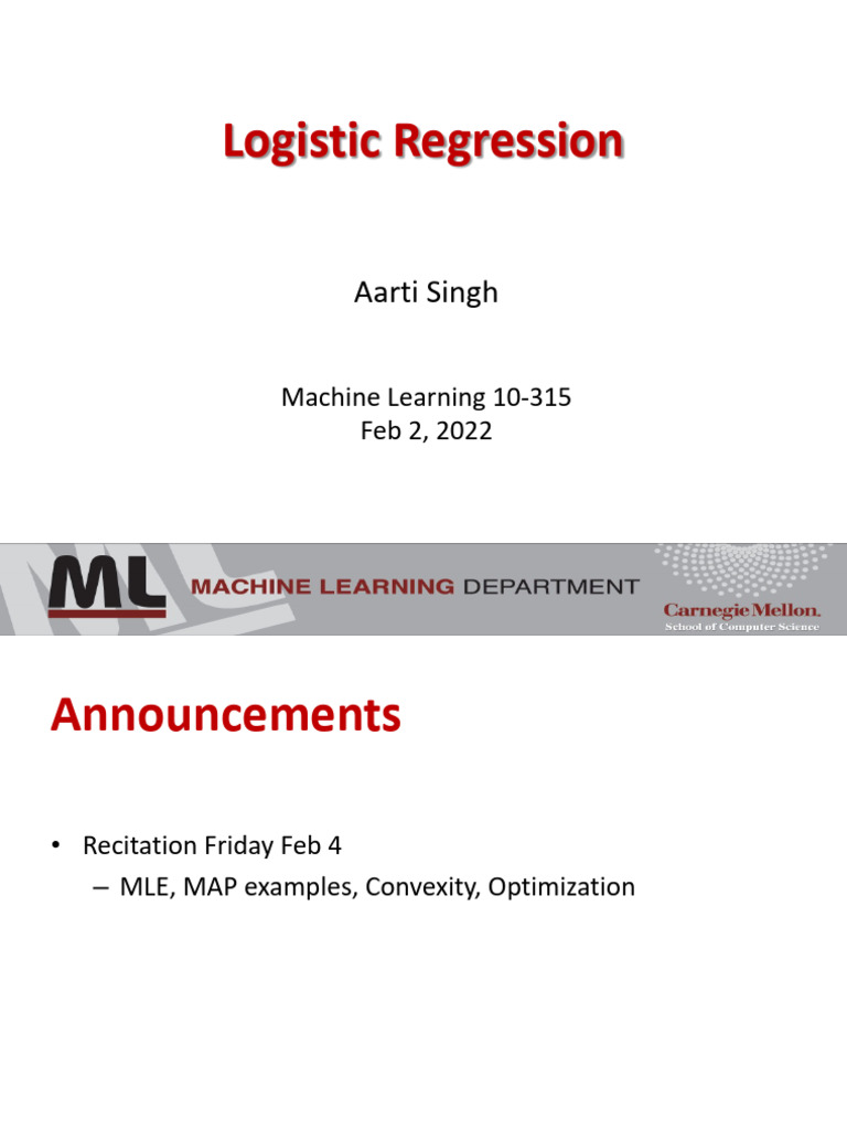 • Logistic regression in more general case, where Y 2{y1,…,yK}