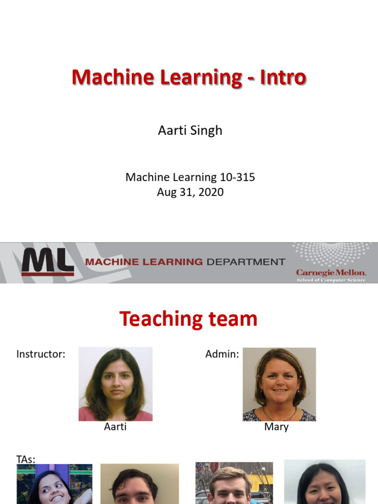 Webpage: https://www.cs.cmu.edu/~aarti/Class/10315_Fall20