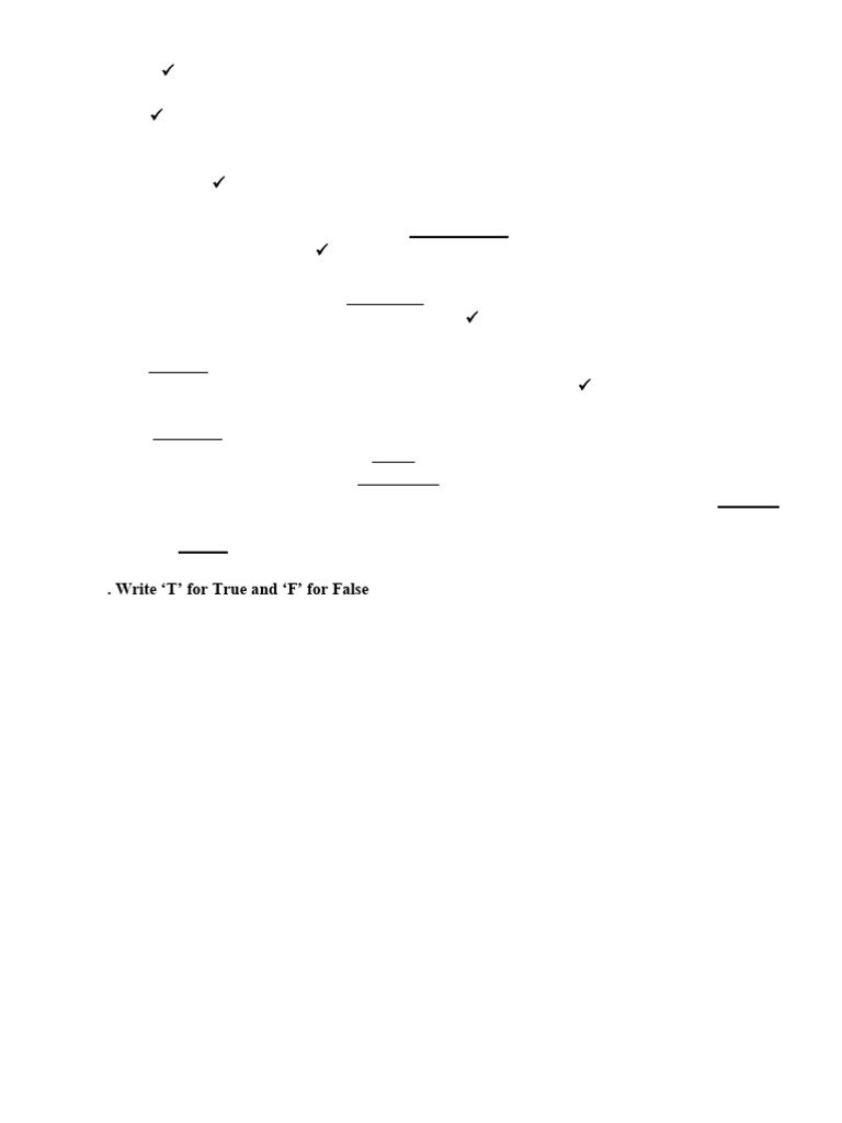 3. Write ‘T’ for True and ‘F’ for False