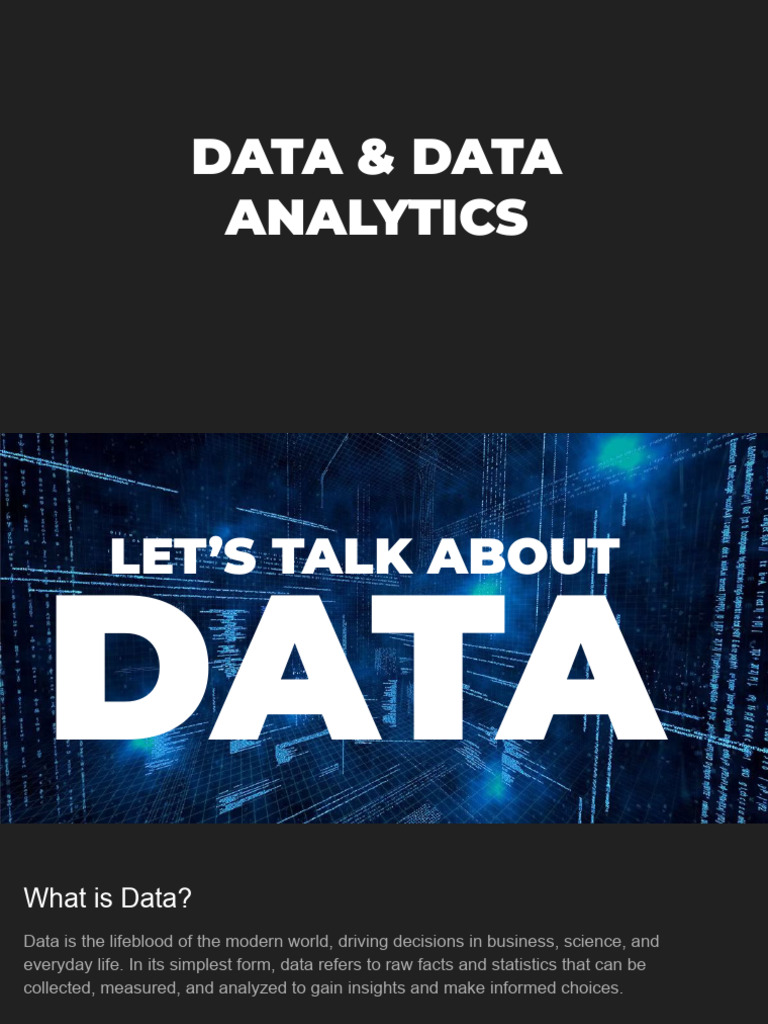 everyday life. In its simplest form, data refers to raw facts and statistics that can be