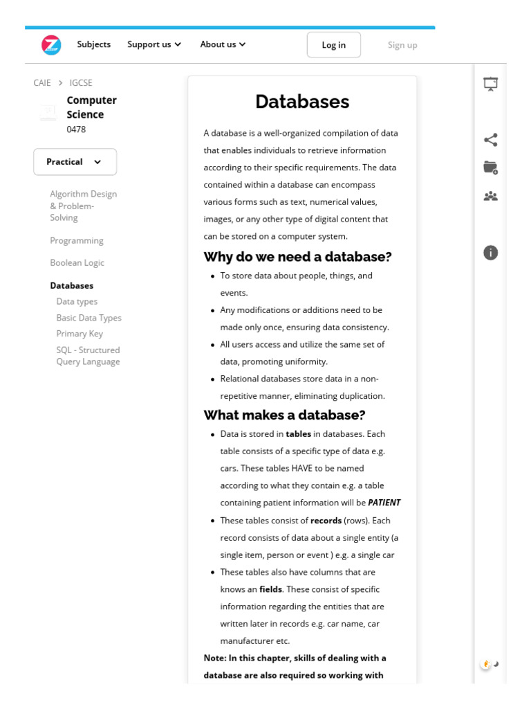 CAIE IGCSE requirements, choose a suitable primary key for a