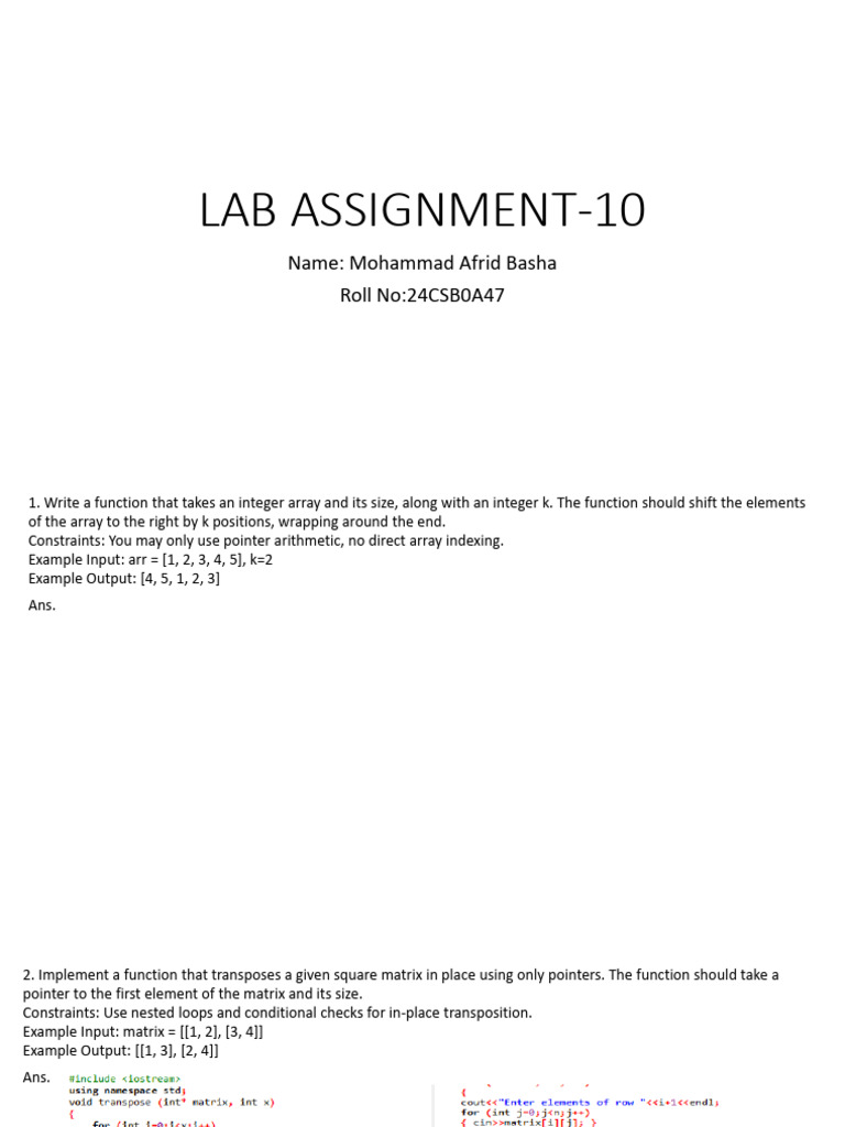 1. Write a function that takes an integer array and its size, along with an integer k. The function should shift the elements