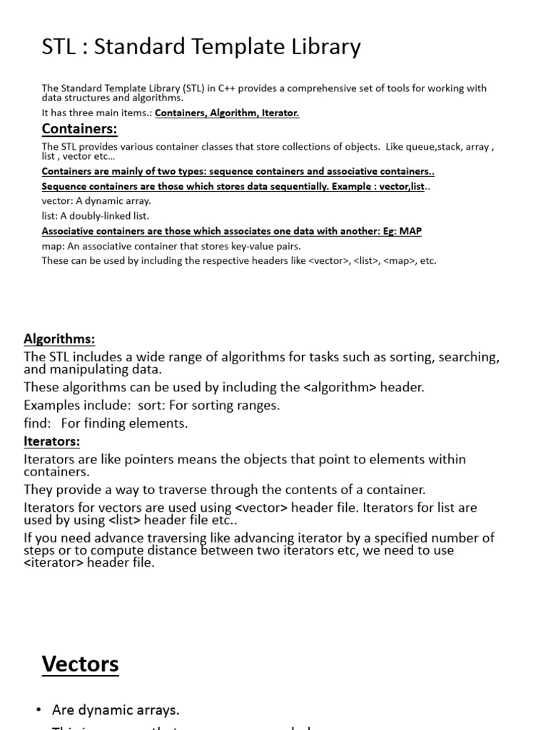 The STL includes a wide range of algorithms for tasks such as sorting, searching,