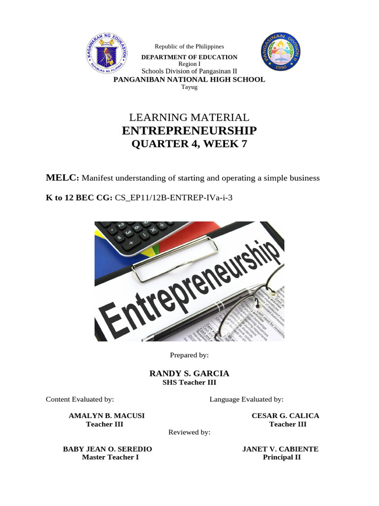 MELC: Manifest understanding of starting and operating a simple business