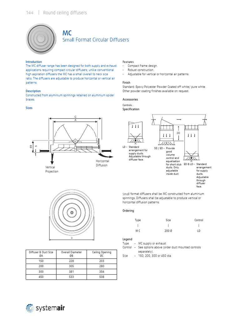 high aspiration diffusers the MC has a small overall to neck size ɉ $GMXVWDEOHIRUYHUWLFDORUKRUL]RQWDODLUSDWWHUQV