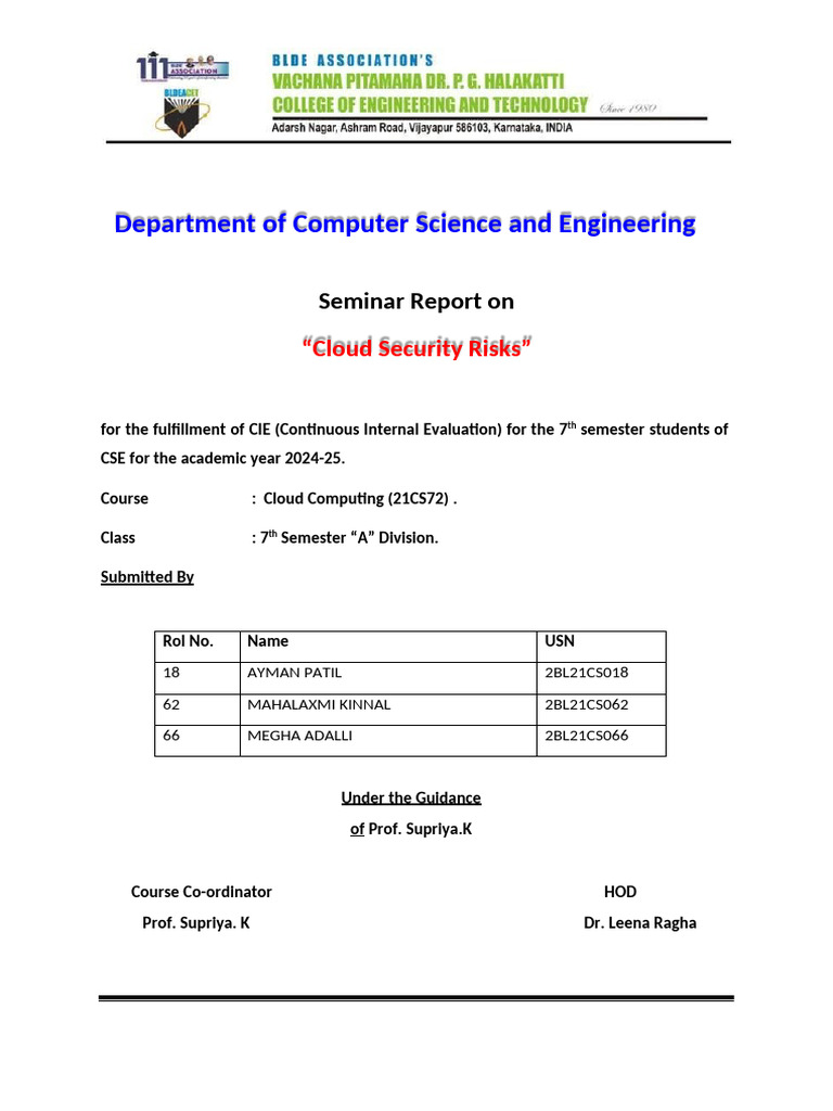 Course : Cloud Computing (21CS72) .