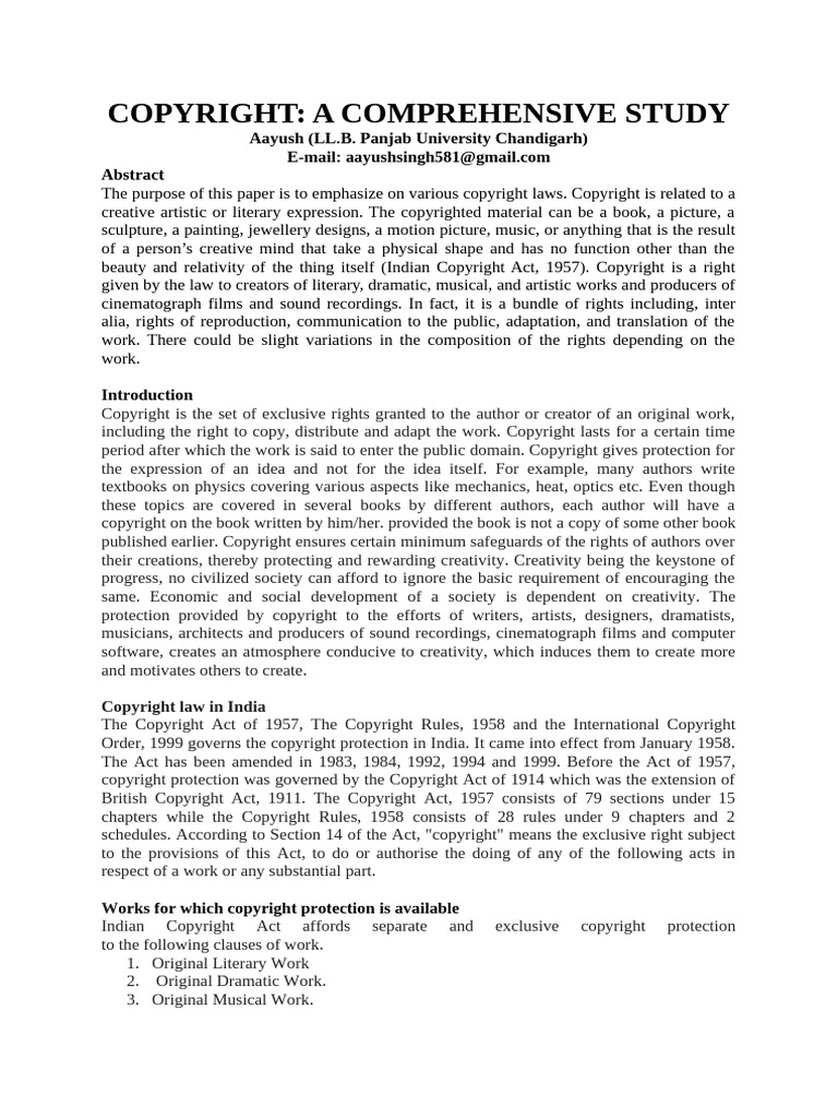 COPYRIGHT: A COMPREHENSIVE STUDY