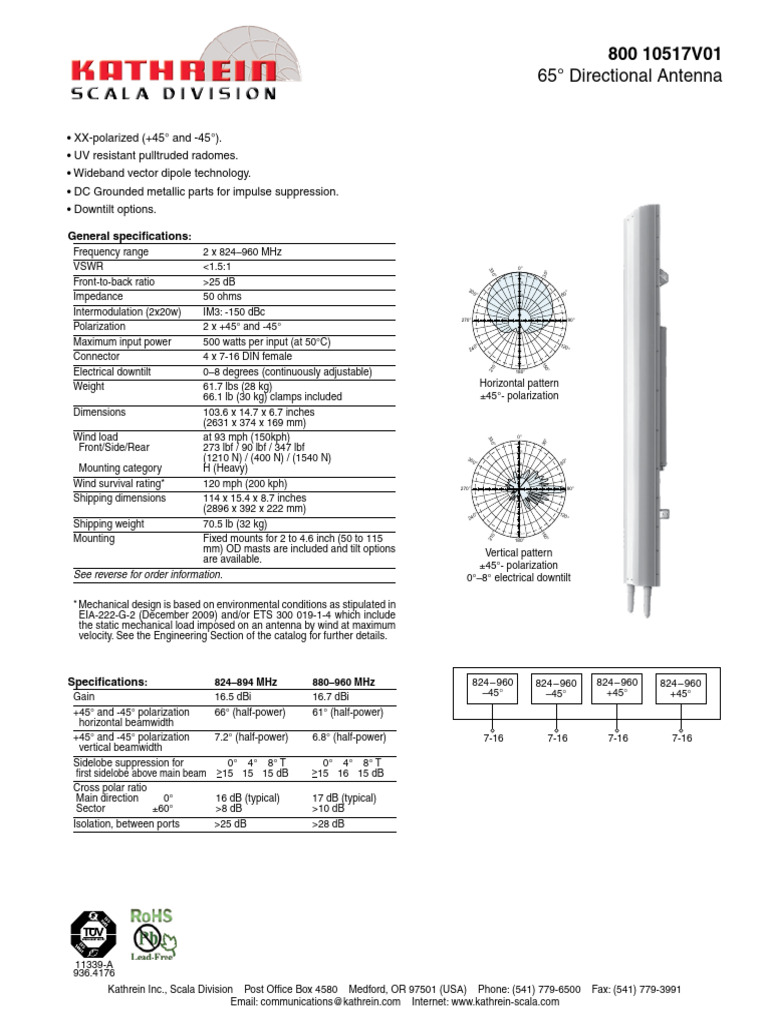 Kathrein Inc., Scala Division Post Office Box 4580 Medford, OR 97501 (USA) Phone: (541) 779-6500 Fax: (541) 779-3991