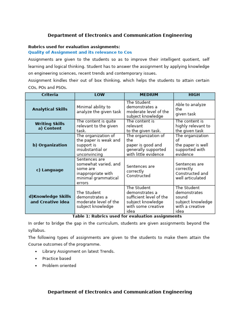 Table 3: Rubrics for Project Evaluation for Second & Third Review