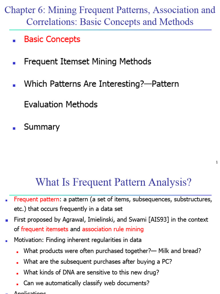 ■ First proposed by Agrawal, Imielinski, and Swami [AIS93] in the context
