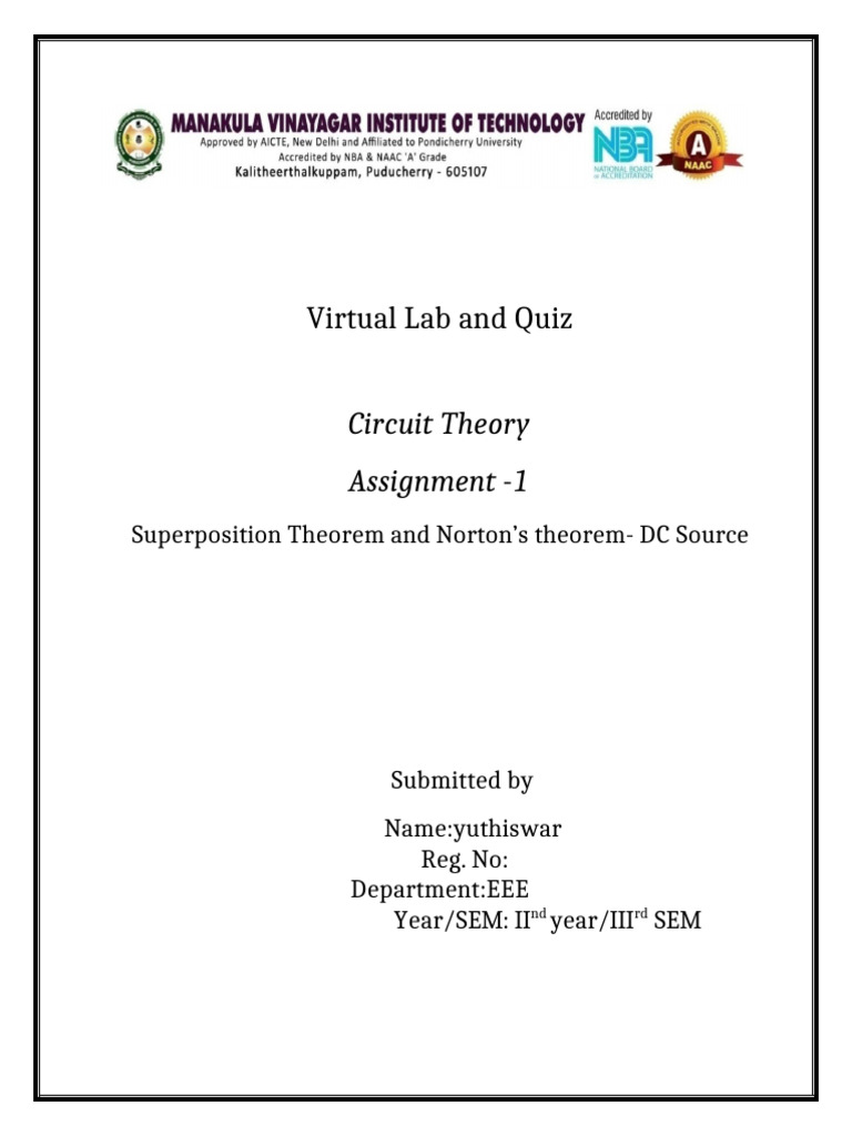 6) Compare the above computed load current with its observed value in step (2) and verify the theorem.