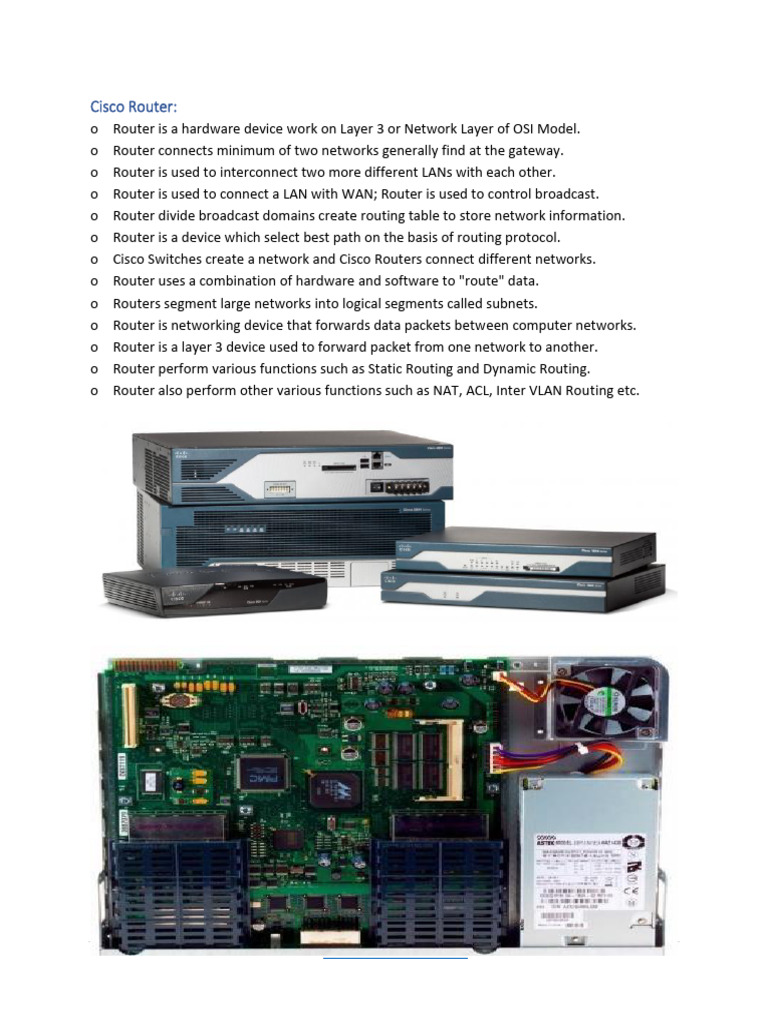 o Router is a hardware device work on Layer 3 or Network Layer of OSI Model.