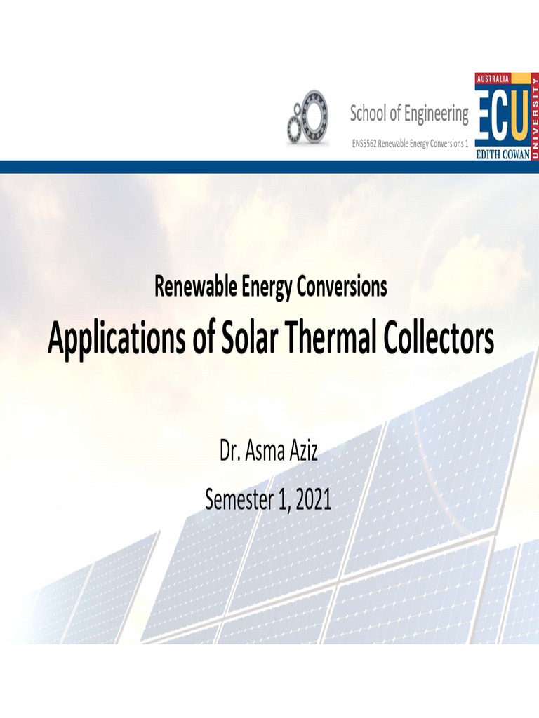 Solar thermal power system ENS5562 Renewable Energy Conversions 1