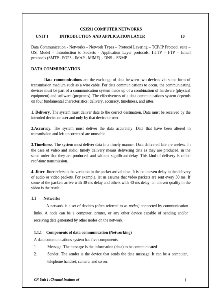 Data Communication - Networks – Network Types – Protocol Layering – TCP/IP Protocol suite –