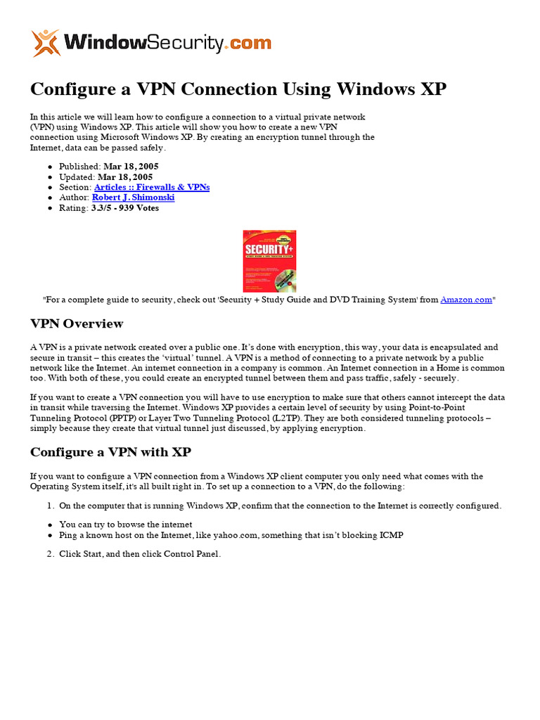 (VPN) using Windows XP. This article will show you how to create a new VPN