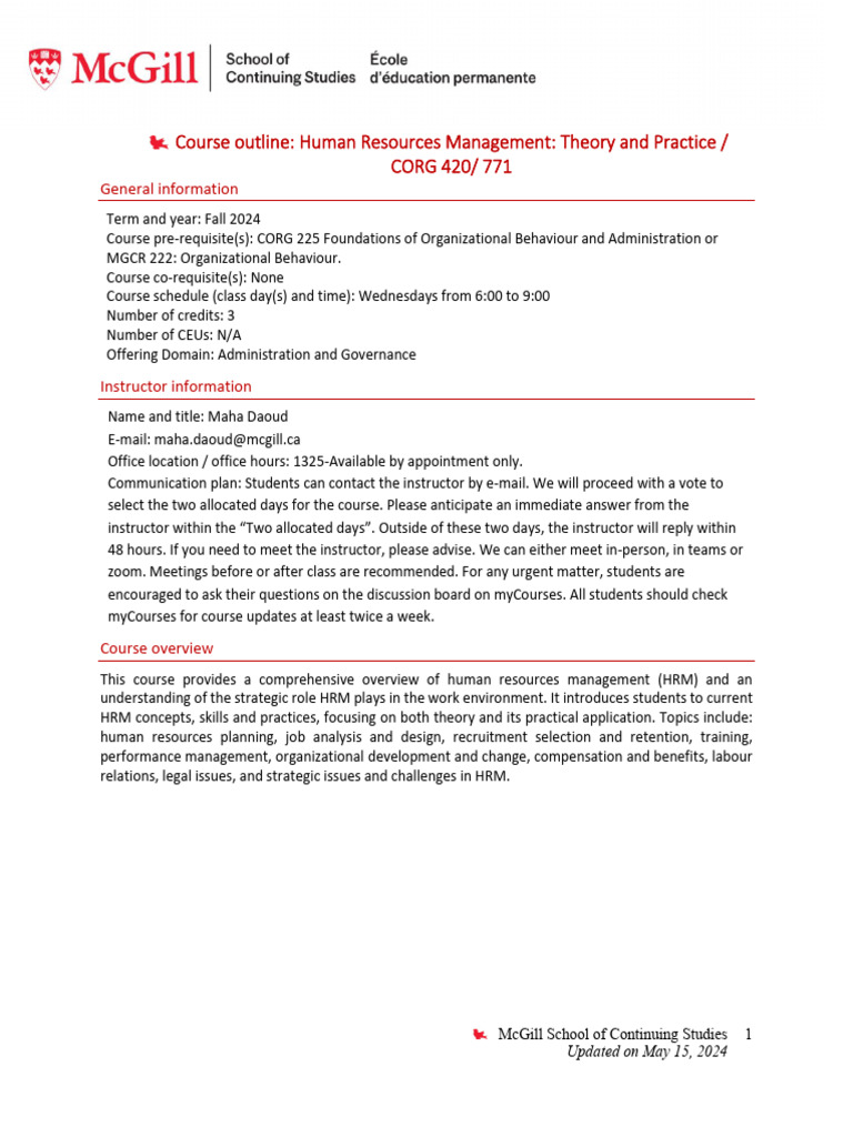 Course pre-requisite(s): CORG 225 Foundations of Organizational Behaviour and Administration or
