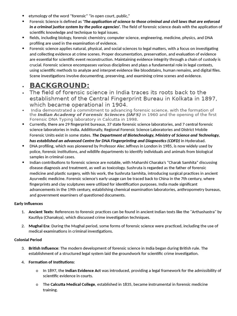 The field of forensic science in India traces its roots back to the