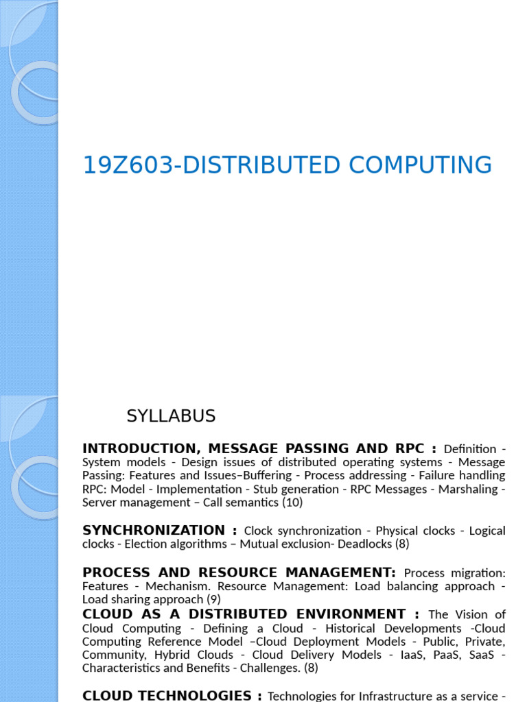 clocks - Election algorithms – Mutual exclusion- Deadlocks (8)